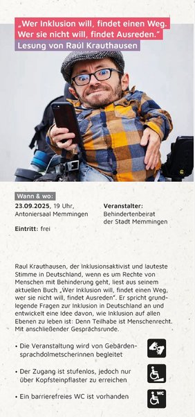 Wir laden Sie herzlich zu einer Veranstaltung des Behindertenbeirates der Stadt Memmingen im Rahmen der Feiern zu 500 Jahre – Zwölf Artikel ein: